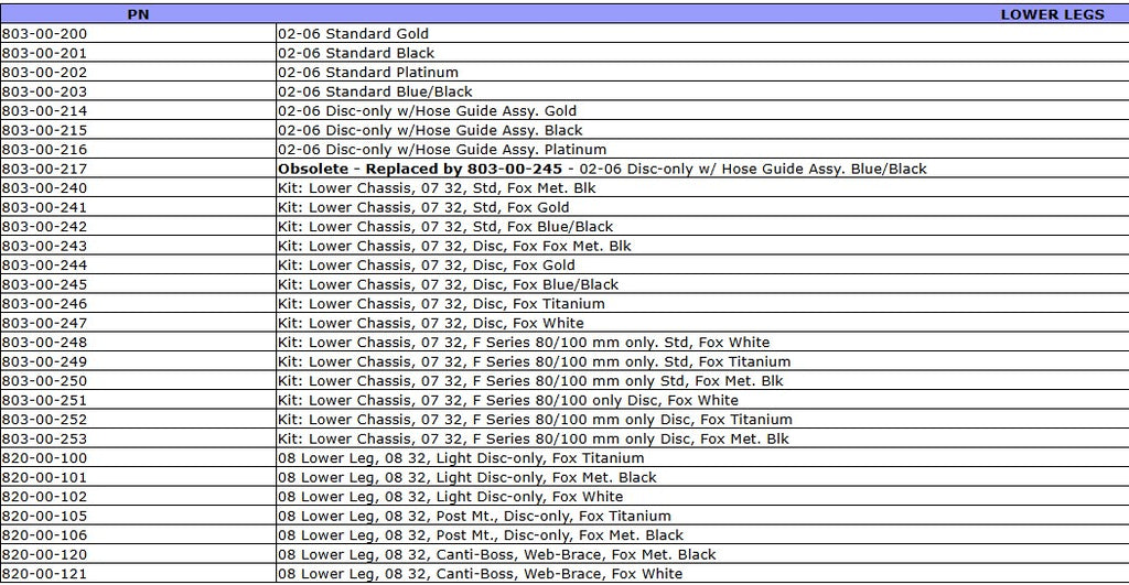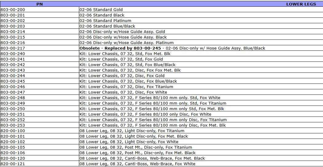 Replacement Lowers with bushings - no wiper seals or decals